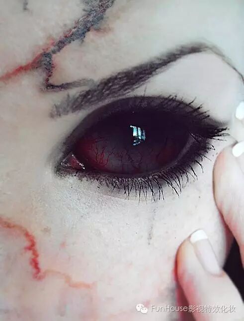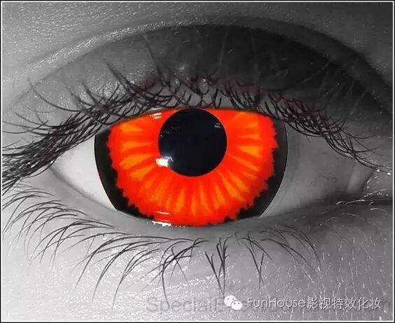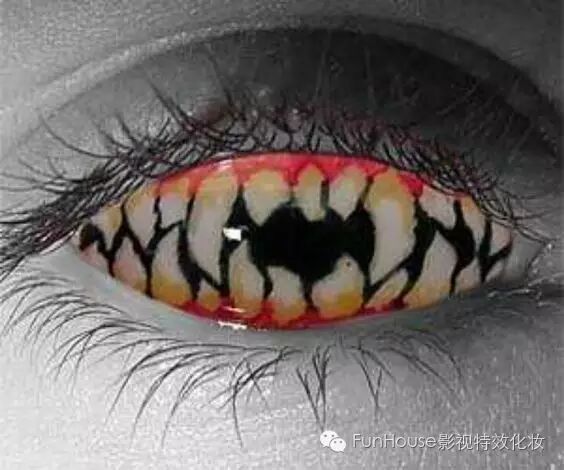 眼睛是心灵的窗户,同时它也可以赋予角色以鲜活的灵魂。特效化妆中大多数作品都需要佩戴特效化妆专用的隐形眼镜来塑造角色。佩戴和妆效搭配恰到好处的隐形眼镜对整体妆效风格的塑造至关重要。正所谓“恰到好处戴眼镜,画龙点睛显效果。”