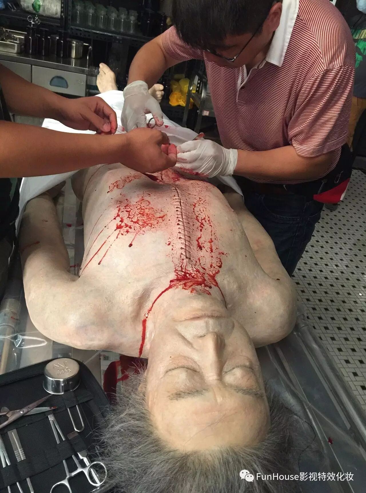为保证剧中“尸体”足够的逼真,FUNHOUSE的工作人员还要掌握相关的法医学、解剖学、生理学等相关知识。
