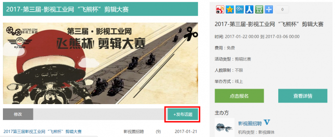2017年1月22日,第三届‘飞熊杯’剪辑大赛于正式启动。